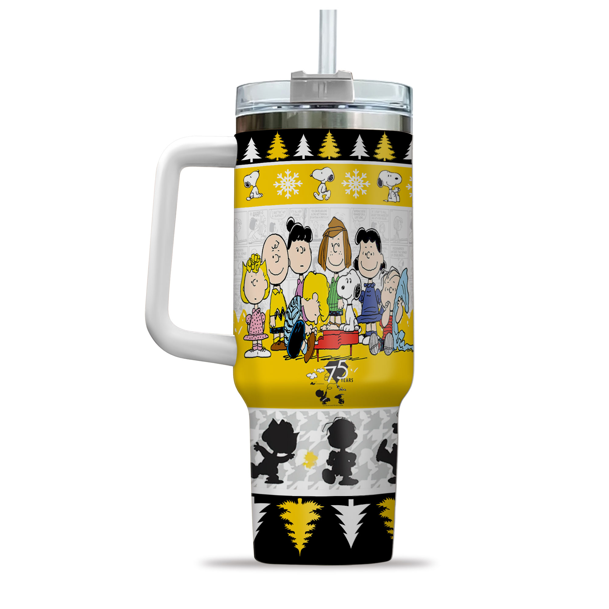 Celebrate 75 years of Peanuts with this vibrant tumbler featuring Snoopy, Charlie Brown, and the gang—perfect for fans of the timeless classic!