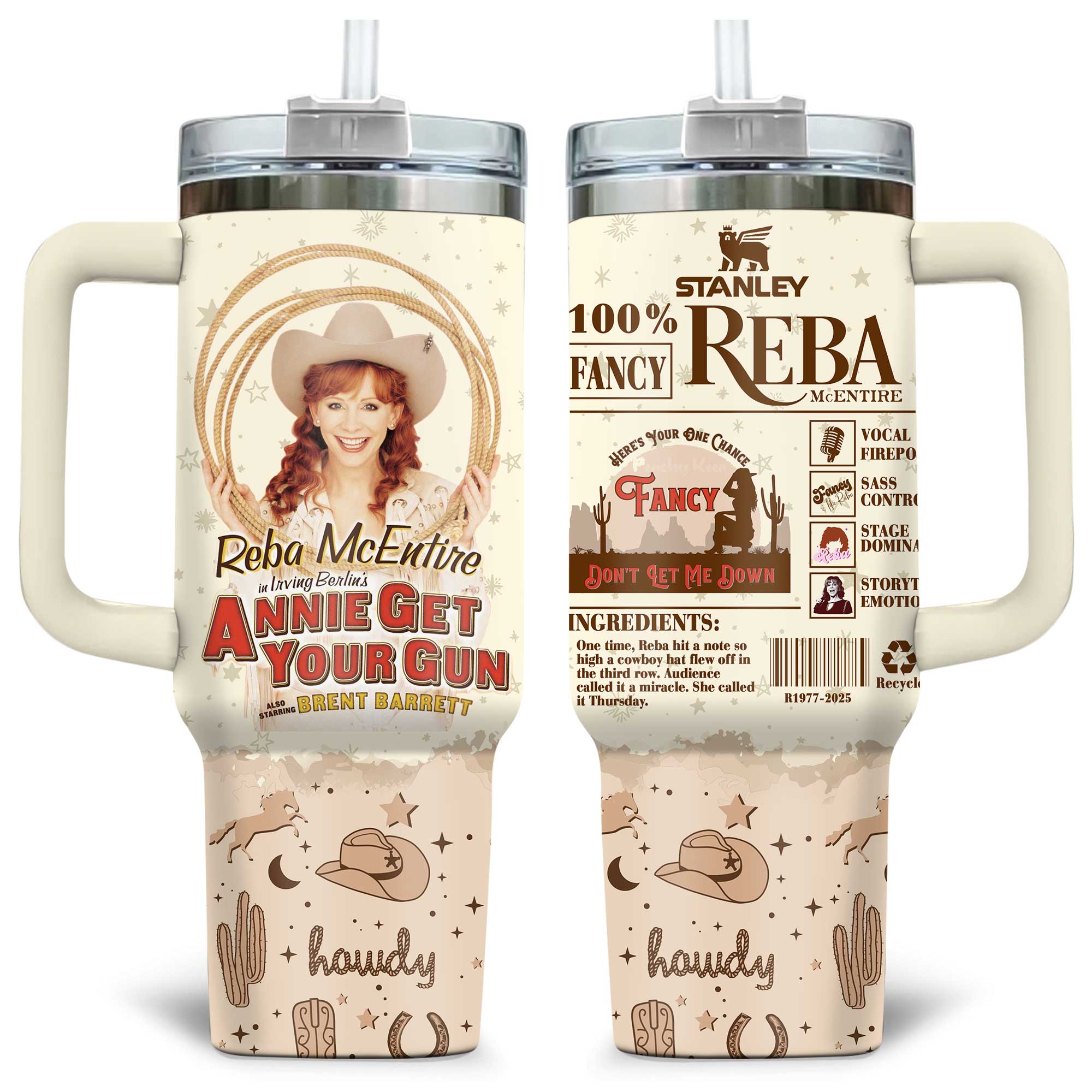 Get ready to shine with this Reba McEntire tumbler inspired by her role in Annie Get Your Gun! Featuring western-themed designs, Reba’s iconic charm, and nods to her hit songs like *Fancy*, this tumbler is perfect for fans who love sass, storytelling, and stage domination.