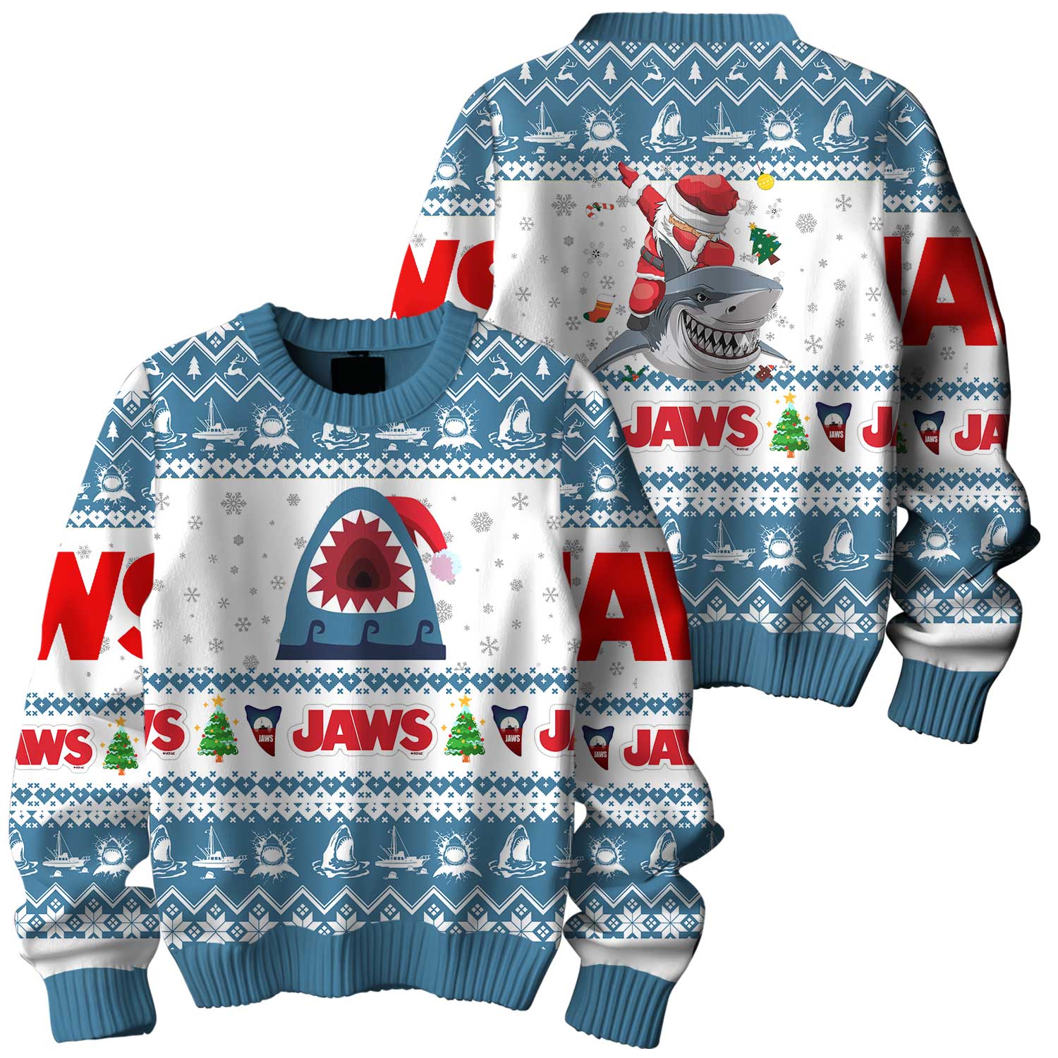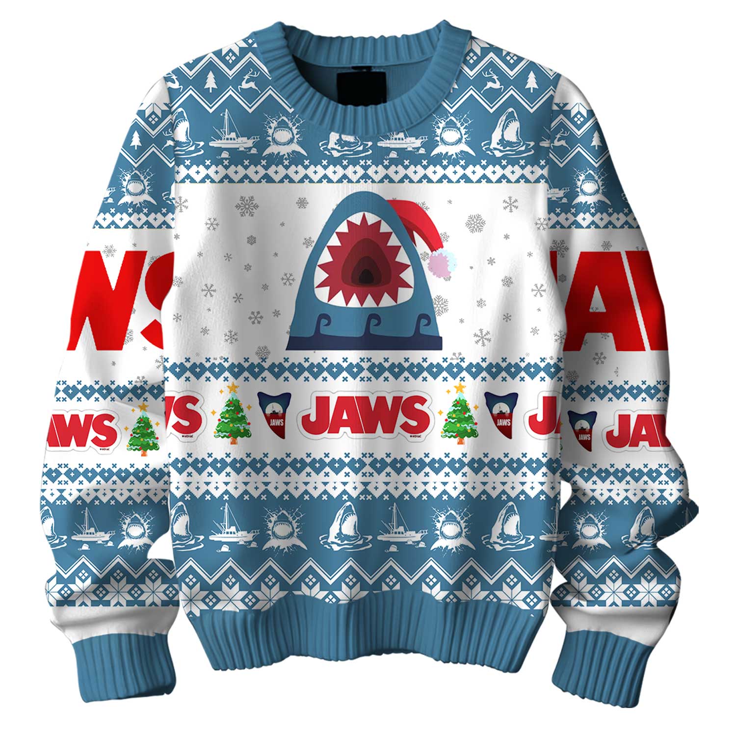 Just when you thought it was safe to celebrate Christmas… This Jaws-themed sweater brings festive fun with a bite! Perfect for making waves this holiday season.