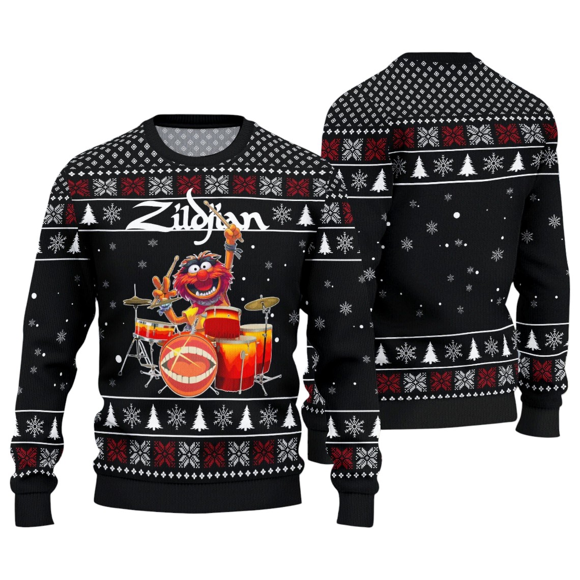 Drum up some holiday cheer with Animal! This festive sweater featuring the wild Muppet drummer and Zildjian cymbals is perfect for music lovers who like their Christmas loud and lively. Rock the season in style!