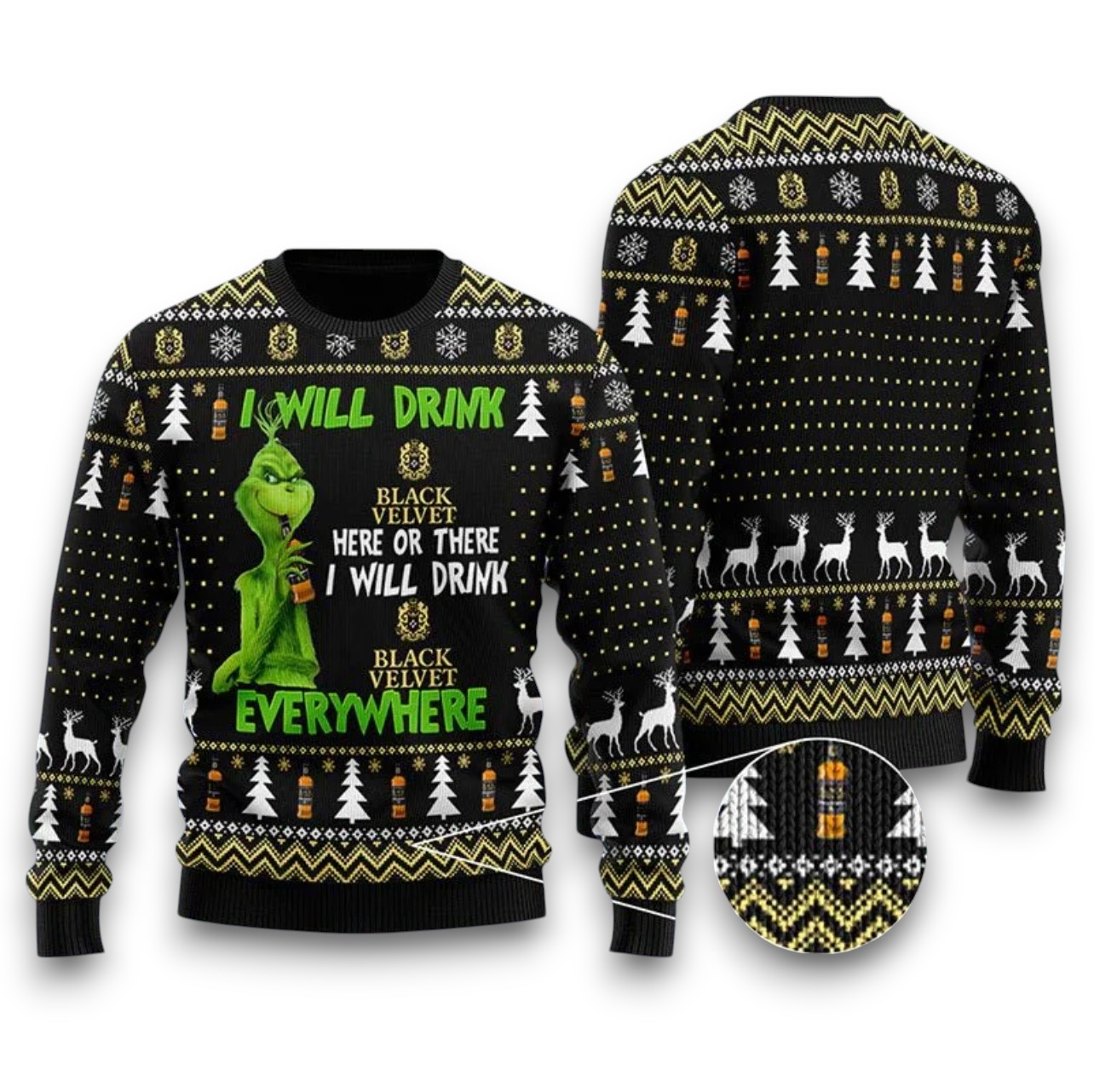 Black Velvet The Grinch Christmas Whiskey Ugly Sweaters