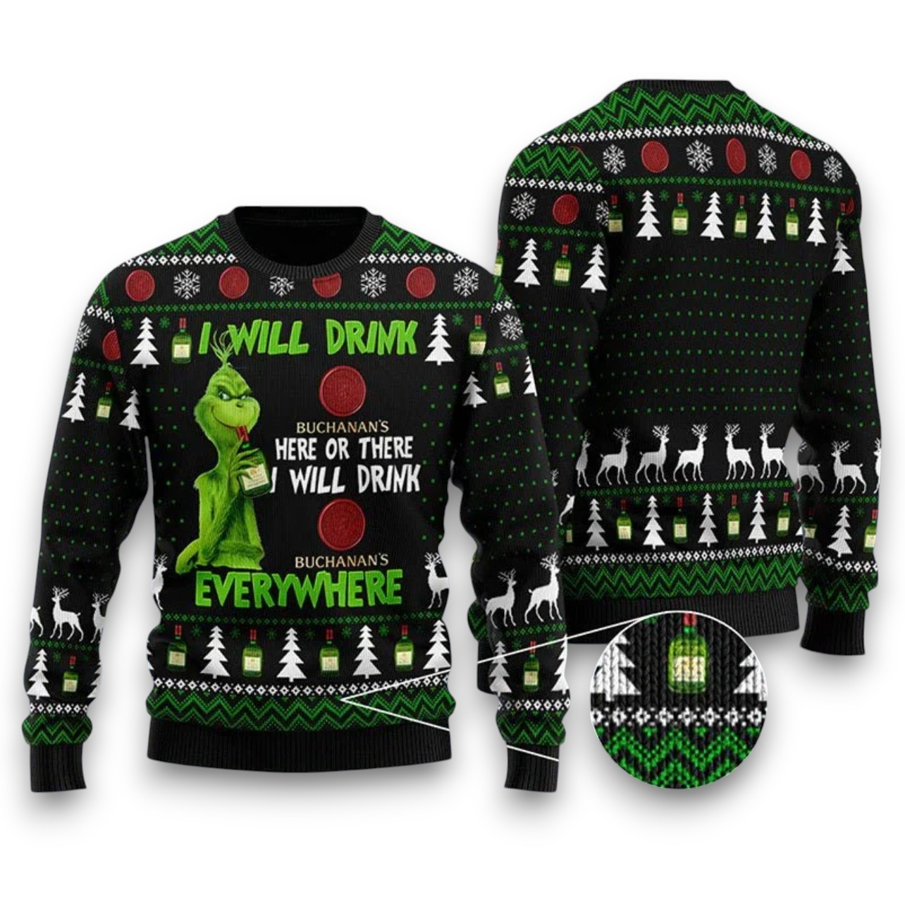 Buchanan’s The Grinch Christmas Whiskey Ugly Sweaters