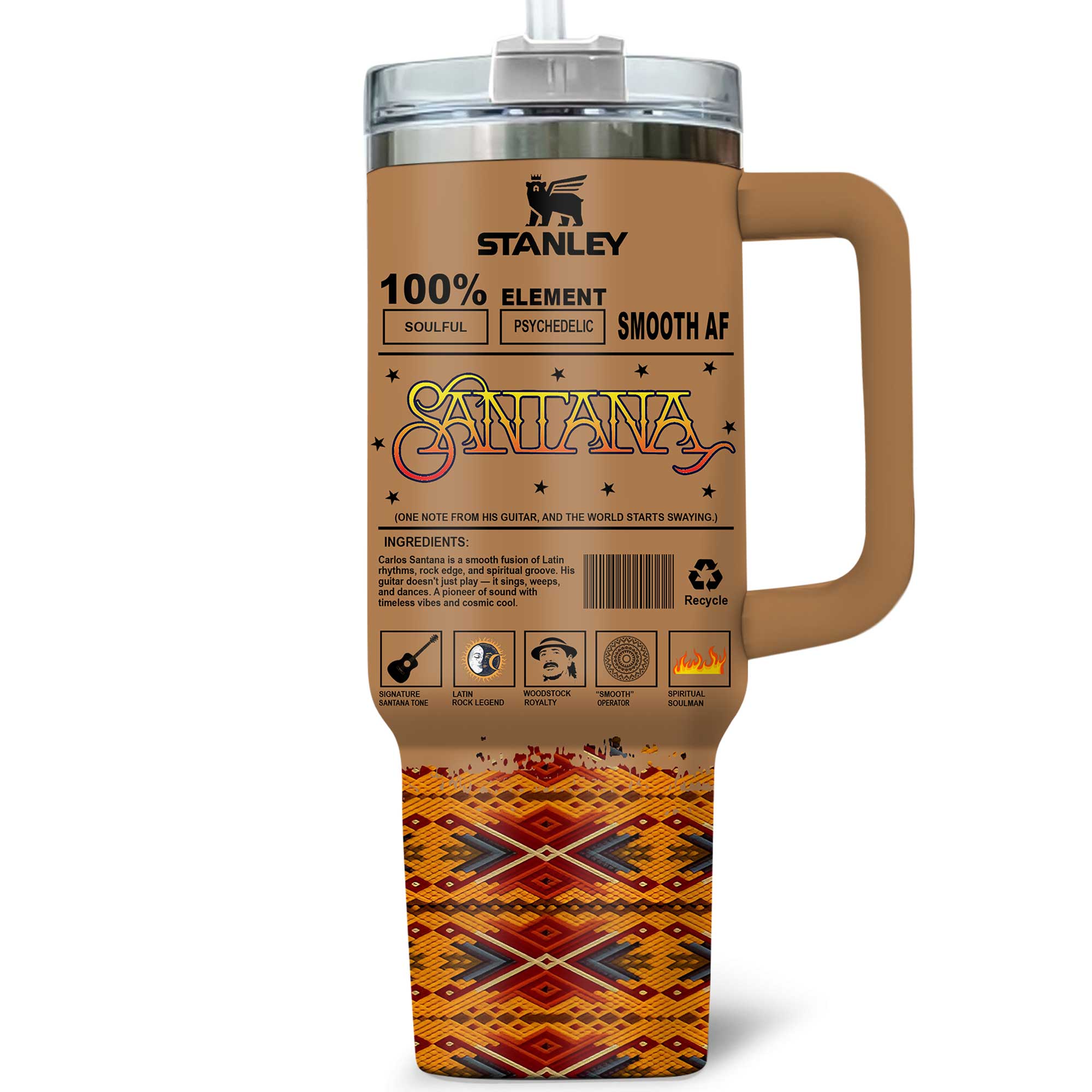 Feel the rhythm with this Santana Stanley tumbler—100% soulful, psychedelic, and smooth AF, perfect for fans of timeless vibes and Latin rock legend grooves!