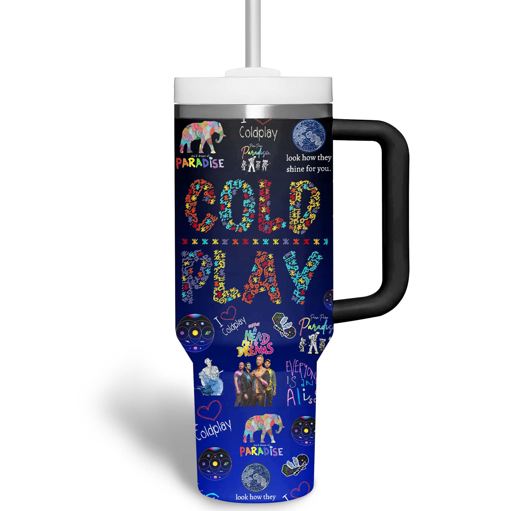 Carry the magic of Coldplay everywhere with this celestial tumbler! Perfect for dreamers and stargazers alike.