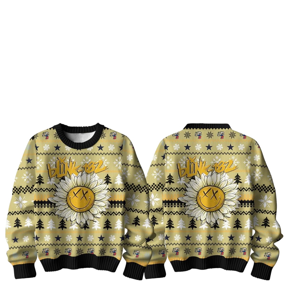 Brighten up your holiday season with this cozy Blink-182 sweater—featuring a cheerful sunflower and festive vibes!