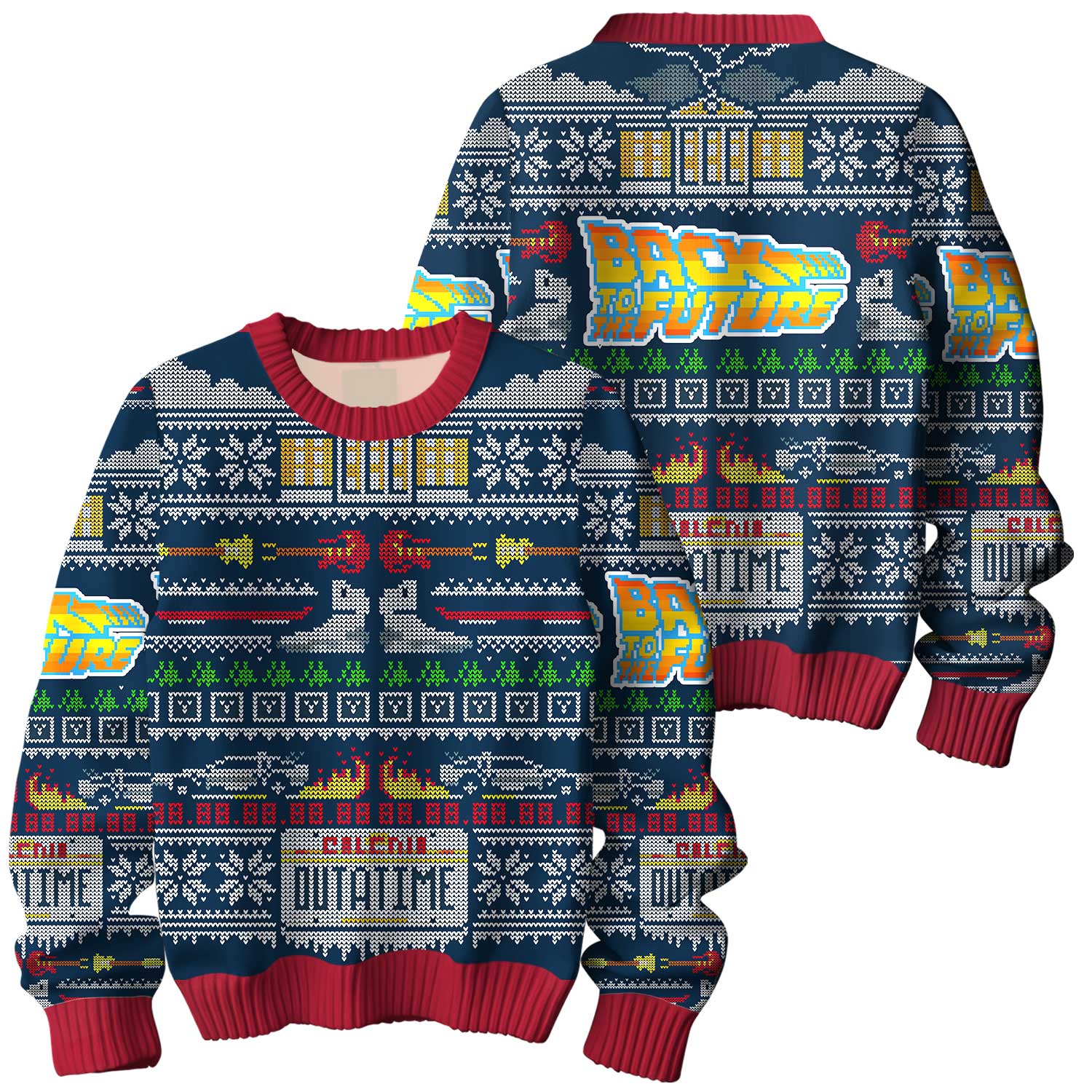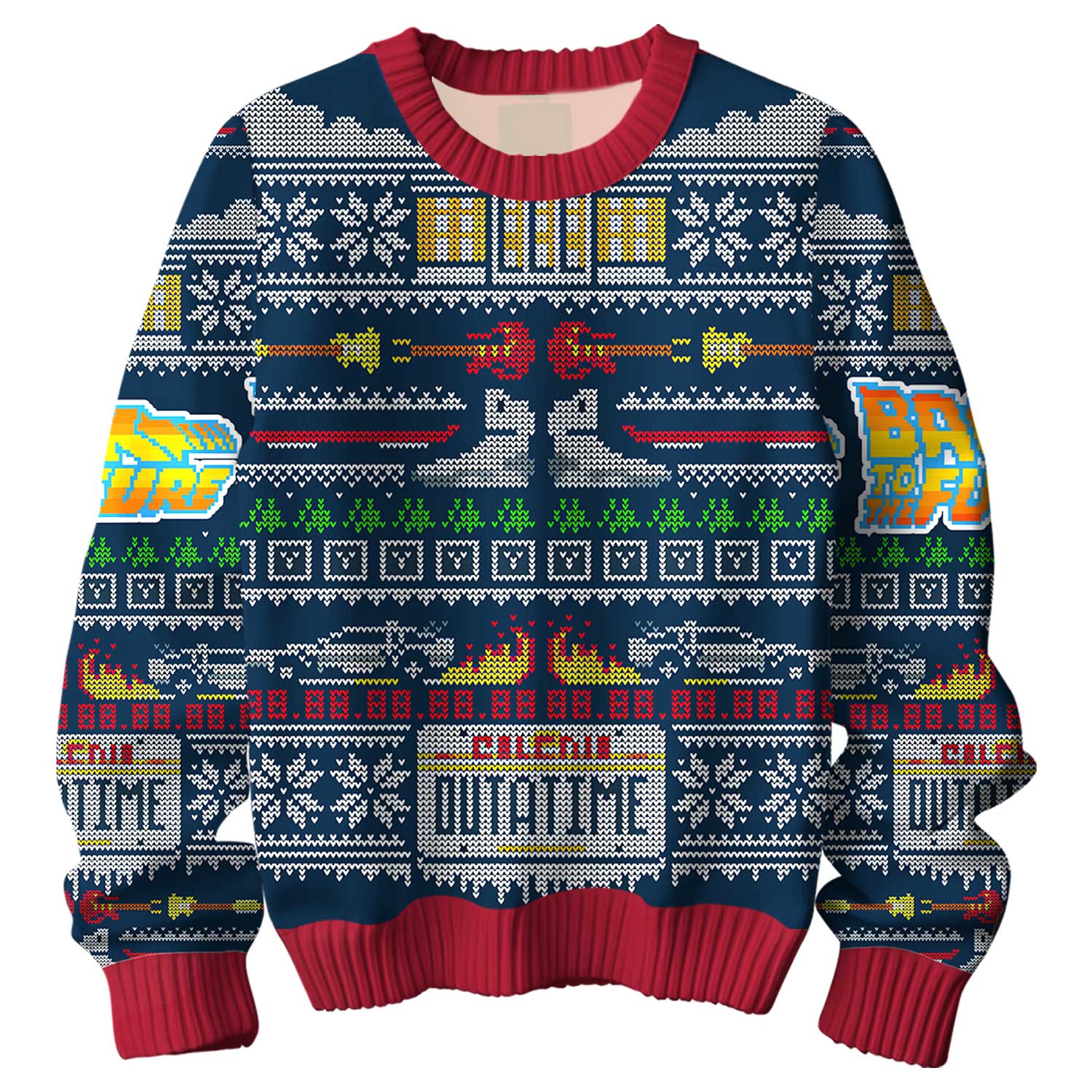 Travel through time in holiday style with this ‘Back to the Future’ Christmas sweater—perfect for fans of the iconic trilogy!