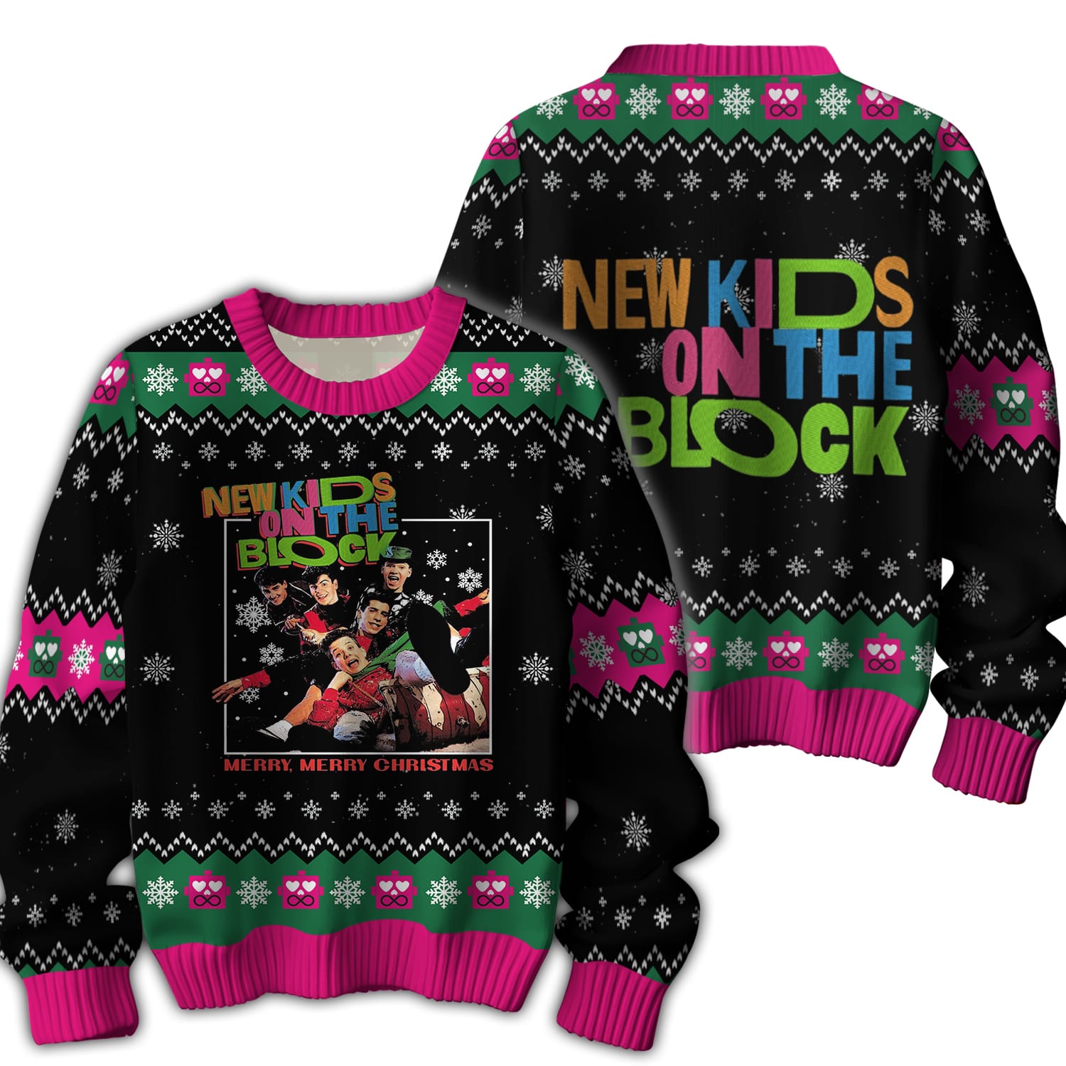 Get into the holiday groove with this vibrant New Kids on the Block Christmas sweater—’Merry, Merry Christmas’ in style!