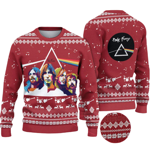 Celebrate the holidays in legendary style with this Pink Floyd Christmas sweater, featuring vibrant portraits, iconic prism art, and festive patterns—perfect for music enthusiasts!