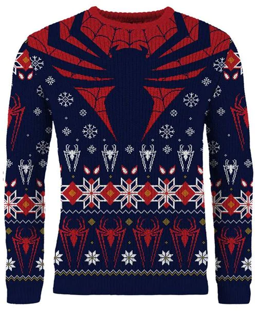 Swing into the holiday season with this Spider-Man-themed Christmas sweater, featuring bold spider emblems and festive patterns—perfect for Marvel fans!