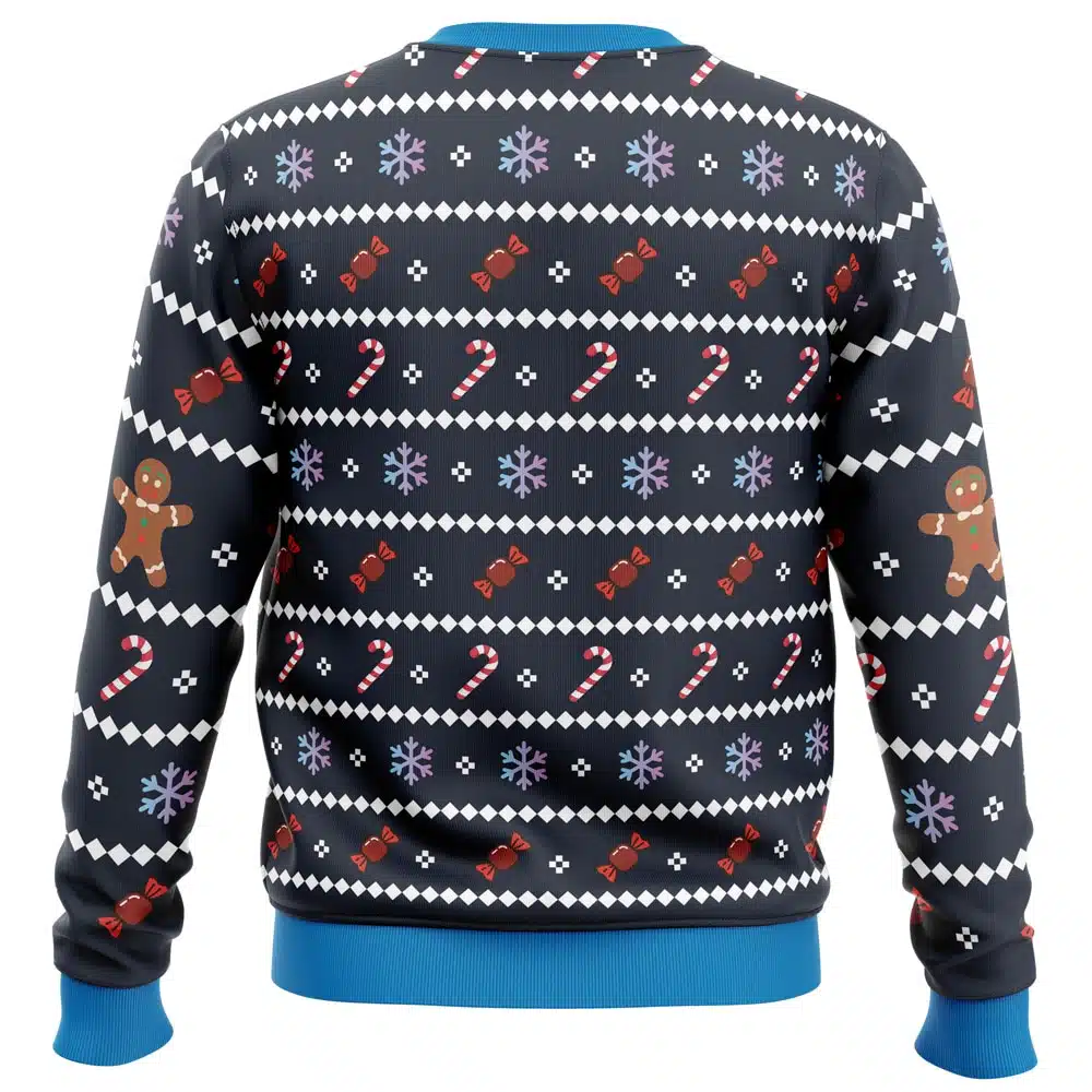 Get into the holiday spirit with this whimsical sweater featuring a playful gingerbread man and a mischievous Cookie Monster-inspired design! Perfect for adding a touch of humor and sweetness to your festive celebrations.