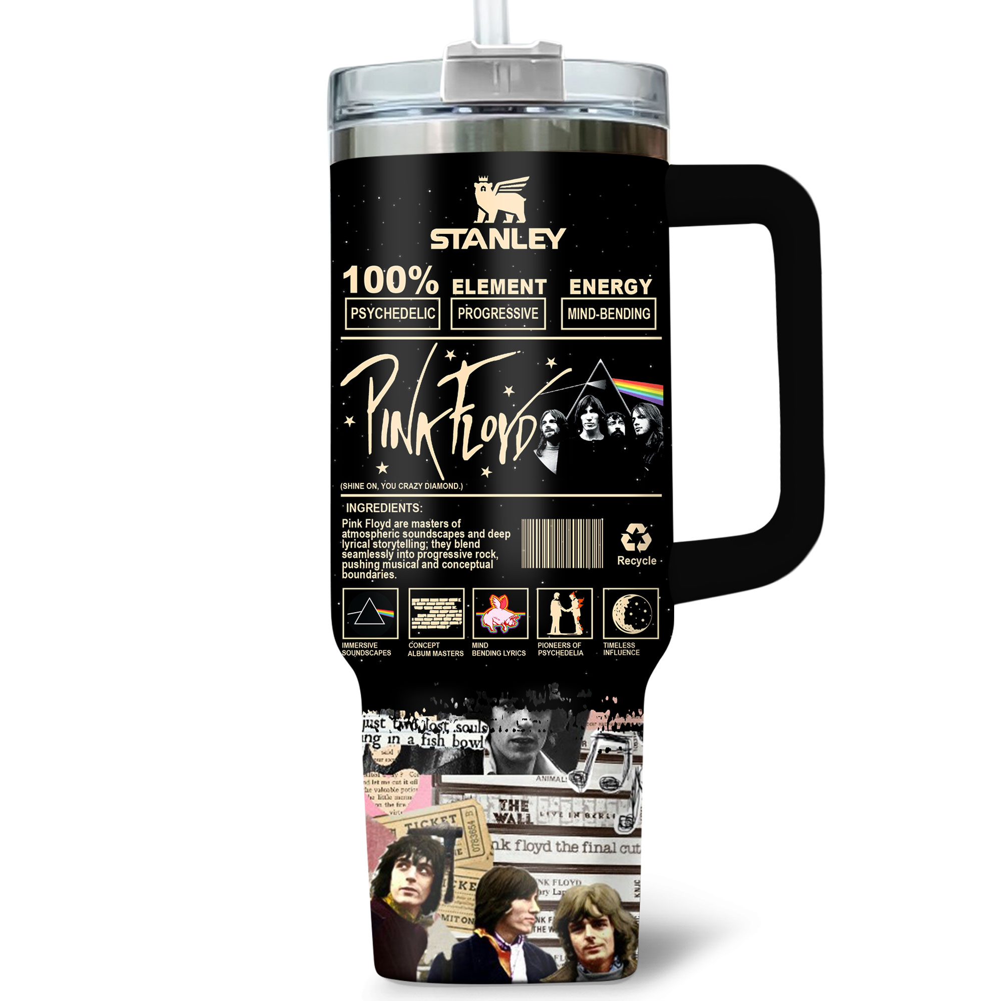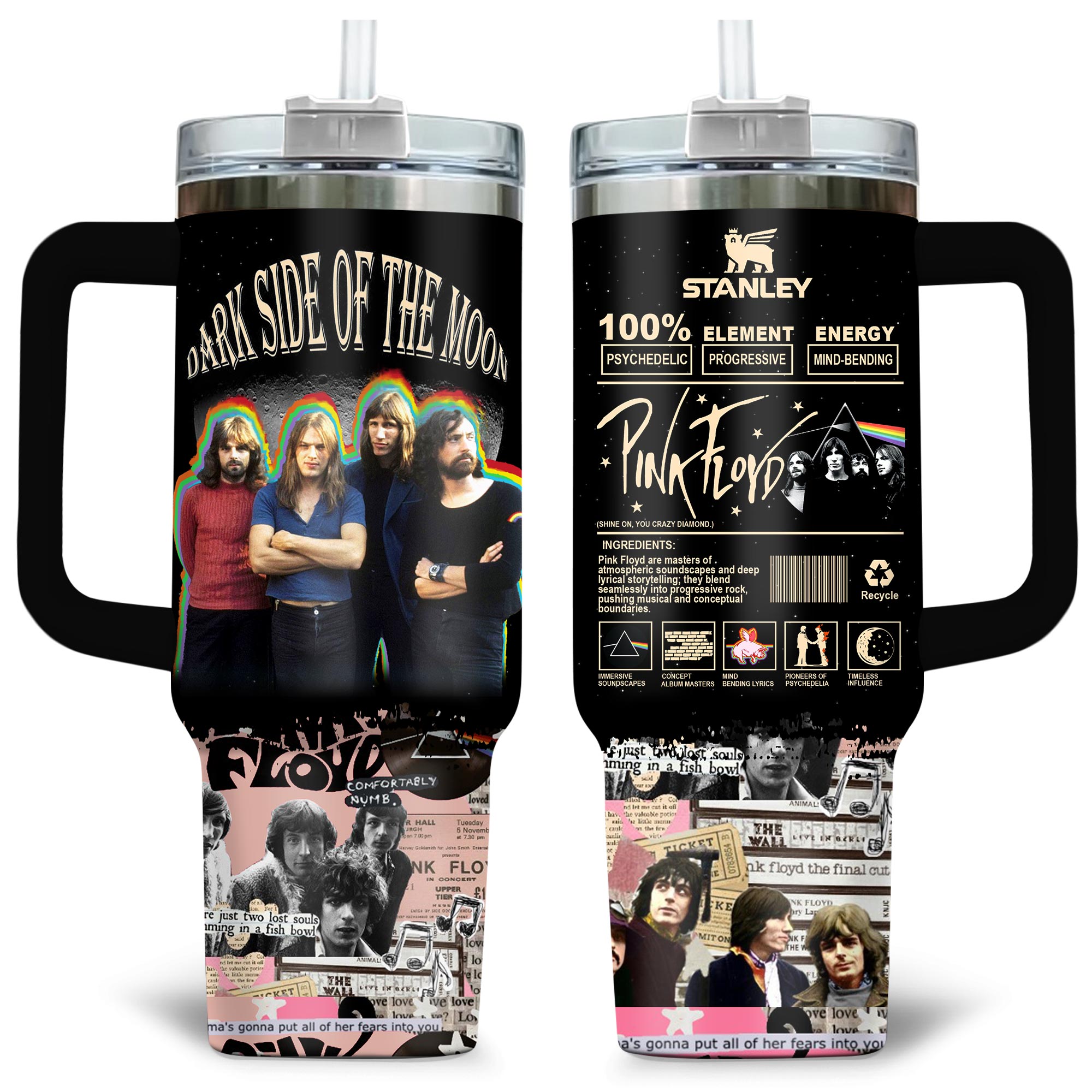Experience mind-bending vibes with this Pink Floyd Stanley tumbler—100% psychedelic, progressive, and perfect for fans of ‘Dark Side of the Moon’ and timeless rock classics!