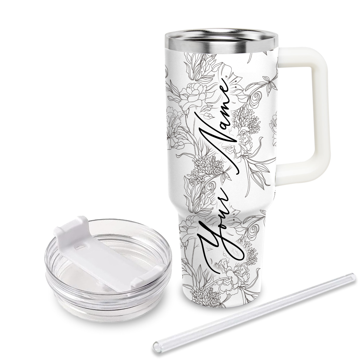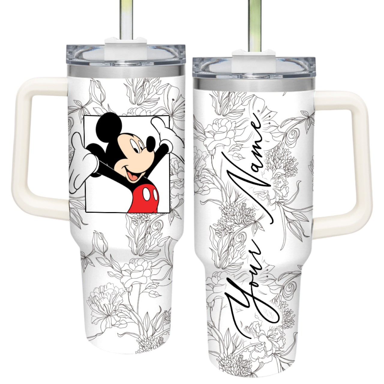 Stay classy with this elegant Mickey Mouse tumbler! Featuring a floral design and customizable name, it’s perfect for Disney fans who love a personal touch.