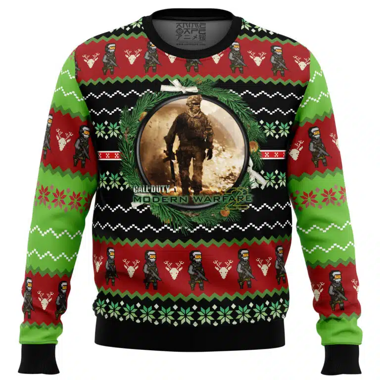 Dusty battlefield tones, iconic soldier silhouette, and gritty Modern Warfare energy — perfect for fans wanting a hardcore holiday sweater with CoD attitude.