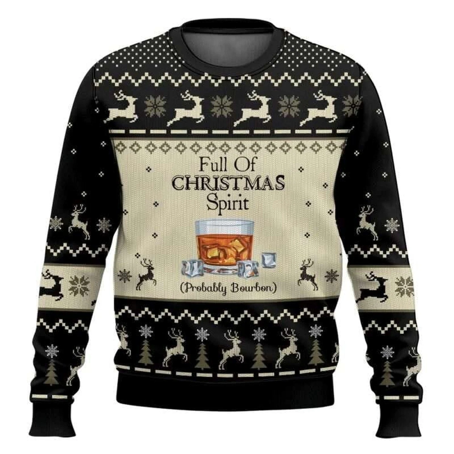 Full Of Christmas Spirit Christmas Whiskey Ugly Sweaters