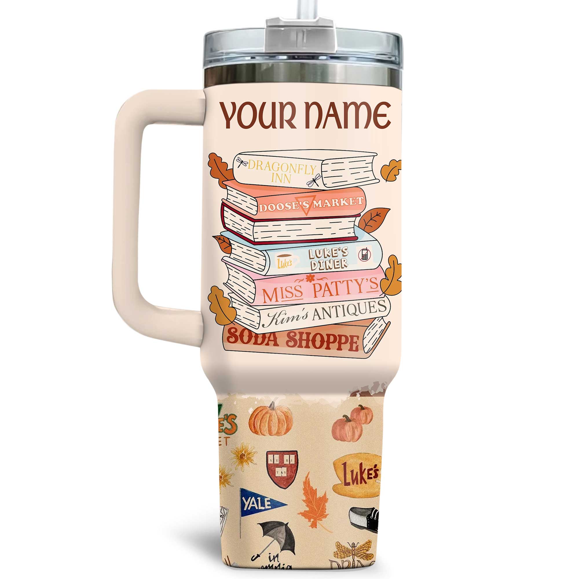Step into Stars Hollow with this charming Gilmore Girls tumbler! Featuring iconic locations like Luke’s Diner, Dragonfly Inn, and Miss Patty’s, this customizable design is perfect for fans who love coffee, witty banter, and the cozy vibes of fall.