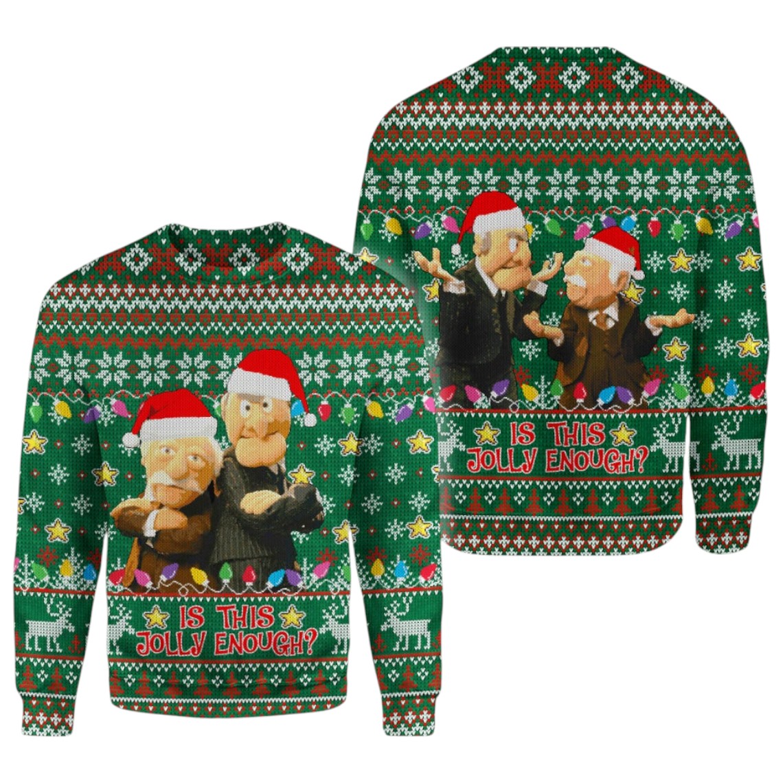 Bring on the festive sass with Statler and Waldorf! This green sweater, decked with lights and snowflakes, perfectly captures their hilariously grumpy holiday spirit. “Is this jolly enough?” Oh, it sure is!
