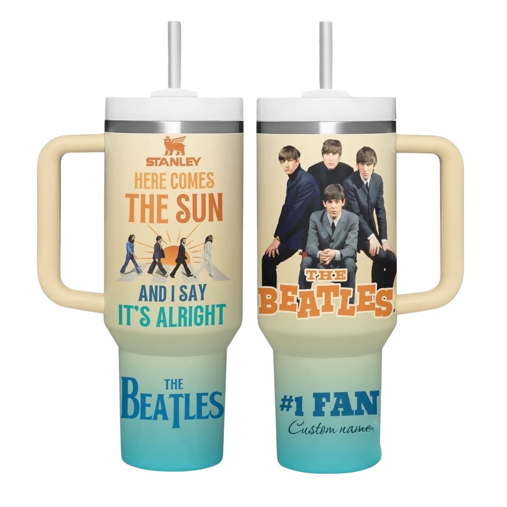Brighten your day with this cheerful Beatles-themed tumbler! Featuring the uplifting lyrics from ‘Here Comes the Sun,’ classic band imagery, and a customizable #1 Fan design, it’s the perfect accessory for devoted fans of the Fab Four.