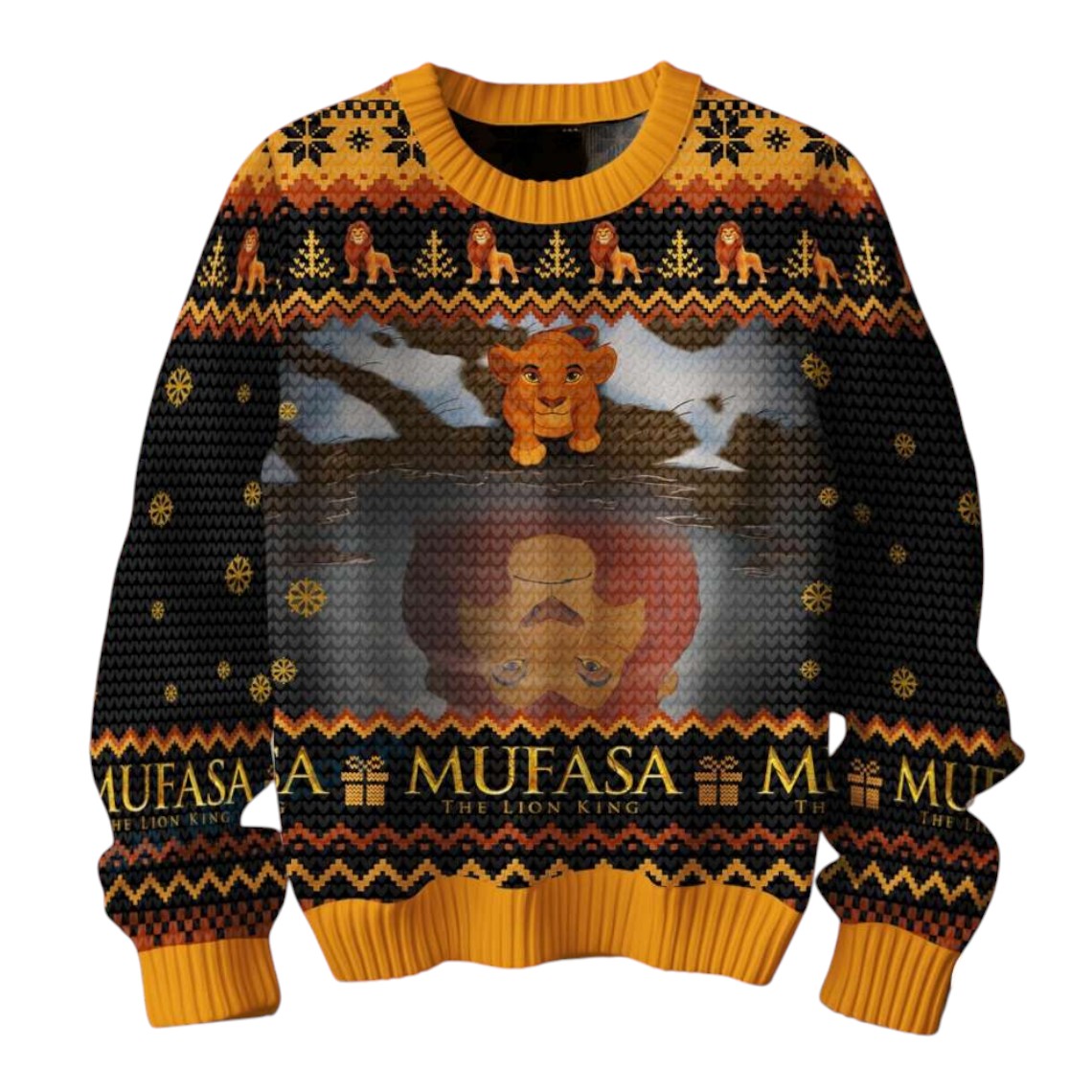 Honor the king this holiday season with this Mufasa sweater. Perfect for majestic vibes and warm memories under the tree.