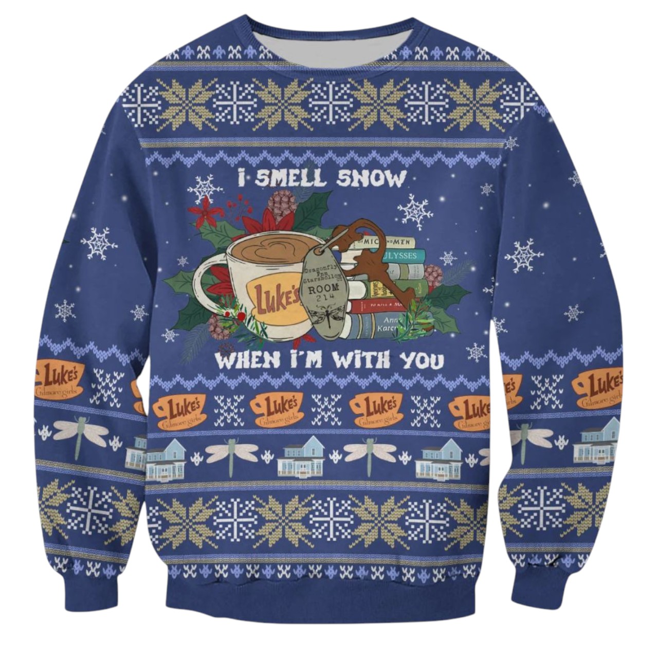 Celebrate the season Stars Hollow style with this cozy “I Smell Snow” sweater! Featuring Luke’s Diner and festive details, it’s the perfect way to stay warm and show your Gilmore Girls love.