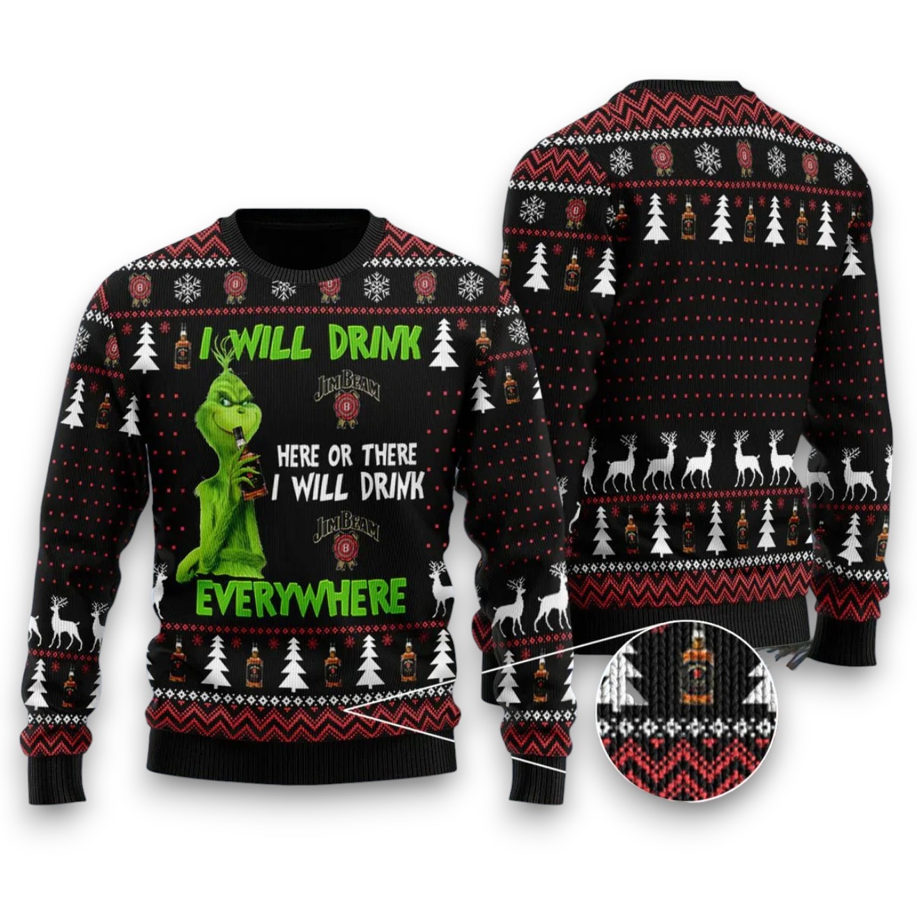 Jim Beam The Grinch Christmas Whiskey Ugly Sweaters