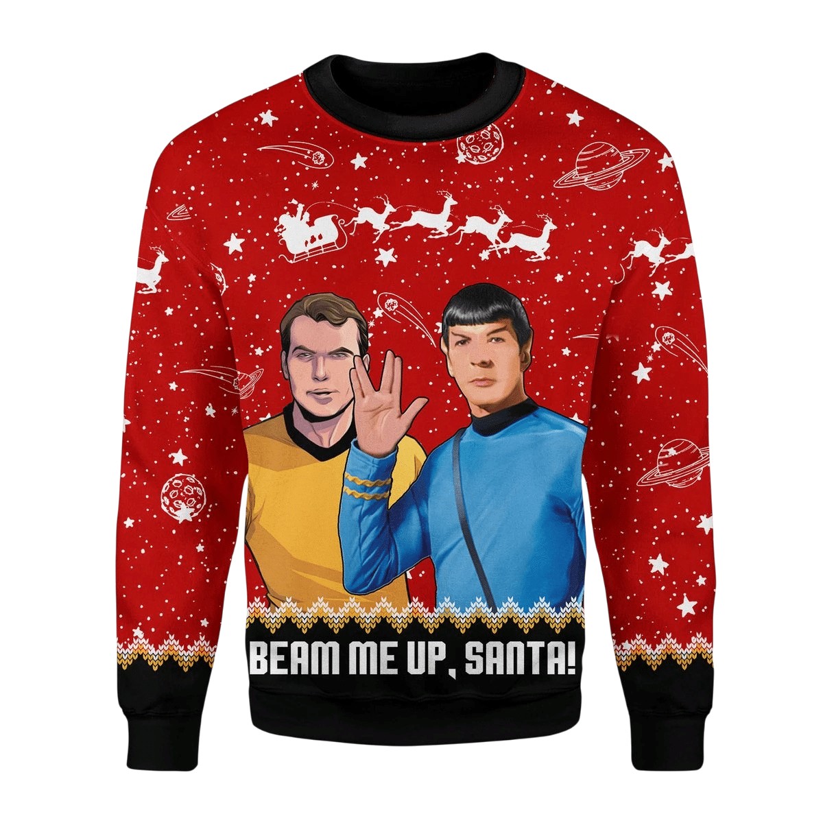 Star Trek Beam Me Up Santa Holiday Sweater – Kirk & Spock Christmas!