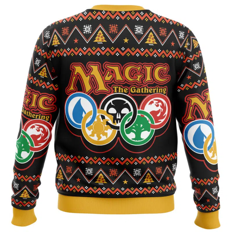 Magic: The Gathering Christmas Sweater — bold, geek-holiday energy with all five mana colors front and center. Perfect for MTG fans who want festive flair with unmistakable planeswalker pride.
