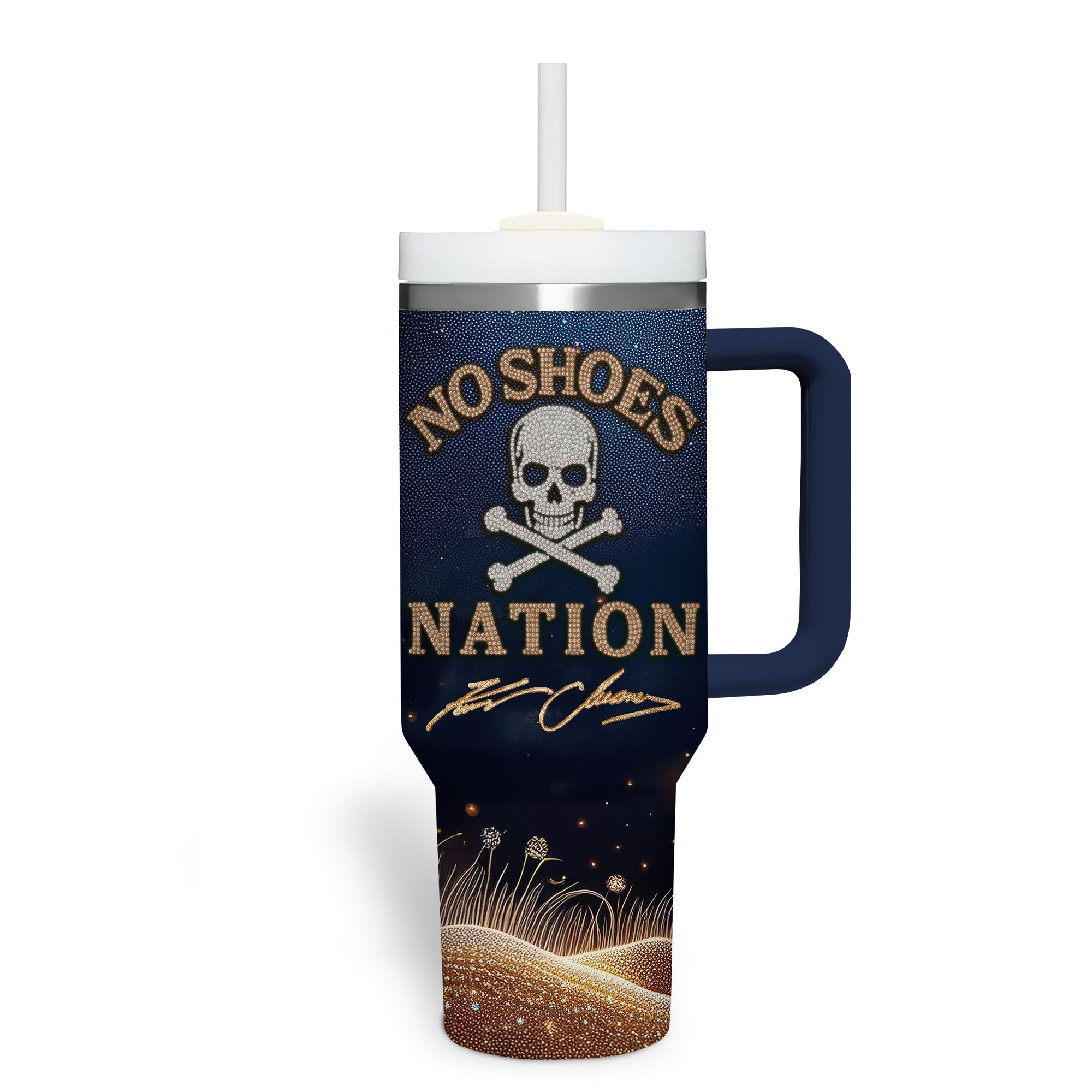 Add some sparkle to your drinkware with this dazzling Kenny Chesney tumbler! Featuring a glittering palm tree, iconic ‘No Shoes Nation’ skull design, and the phrase ‘No Shoes, No Shirt, No Problems,’ it’s perfect for fans who love a touch of glam with their beach vibes.