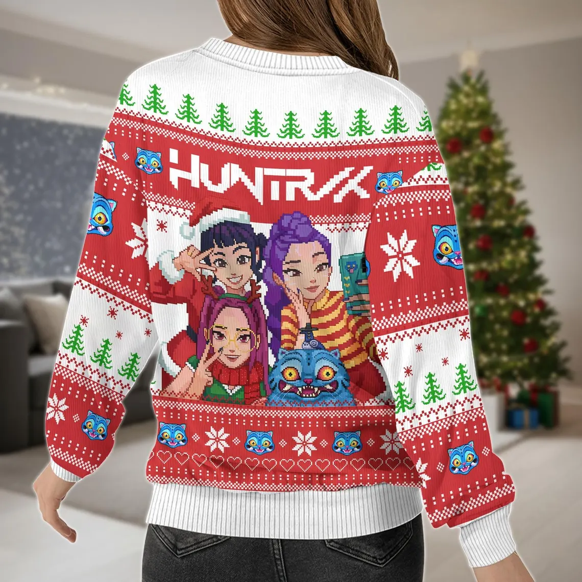 Get festive with this K-pop Demon Hunters-inspired sweater! Slay demons and holiday fashion with your squad in pixel-perfect style!