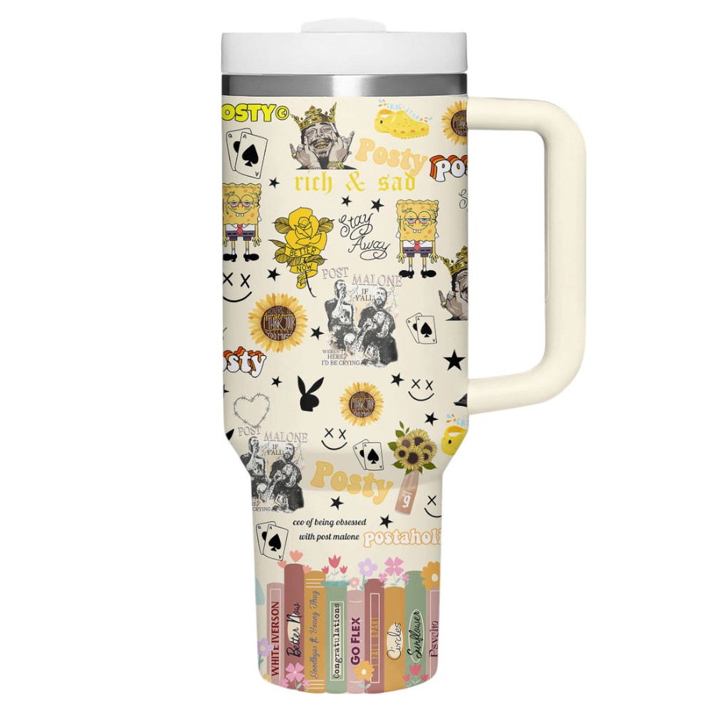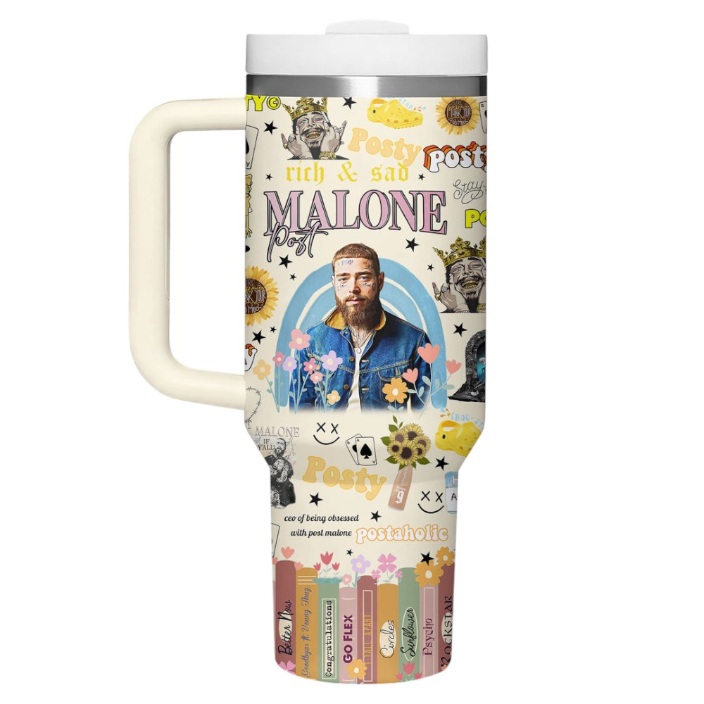 Celebrate your love for Post Malone with this fun and vibrant tumbler, featuring playful designs, song references, and “Posty” vibes—a must-have for any fan!