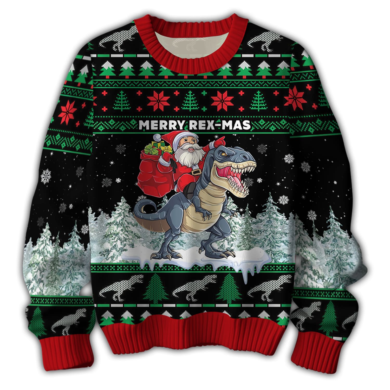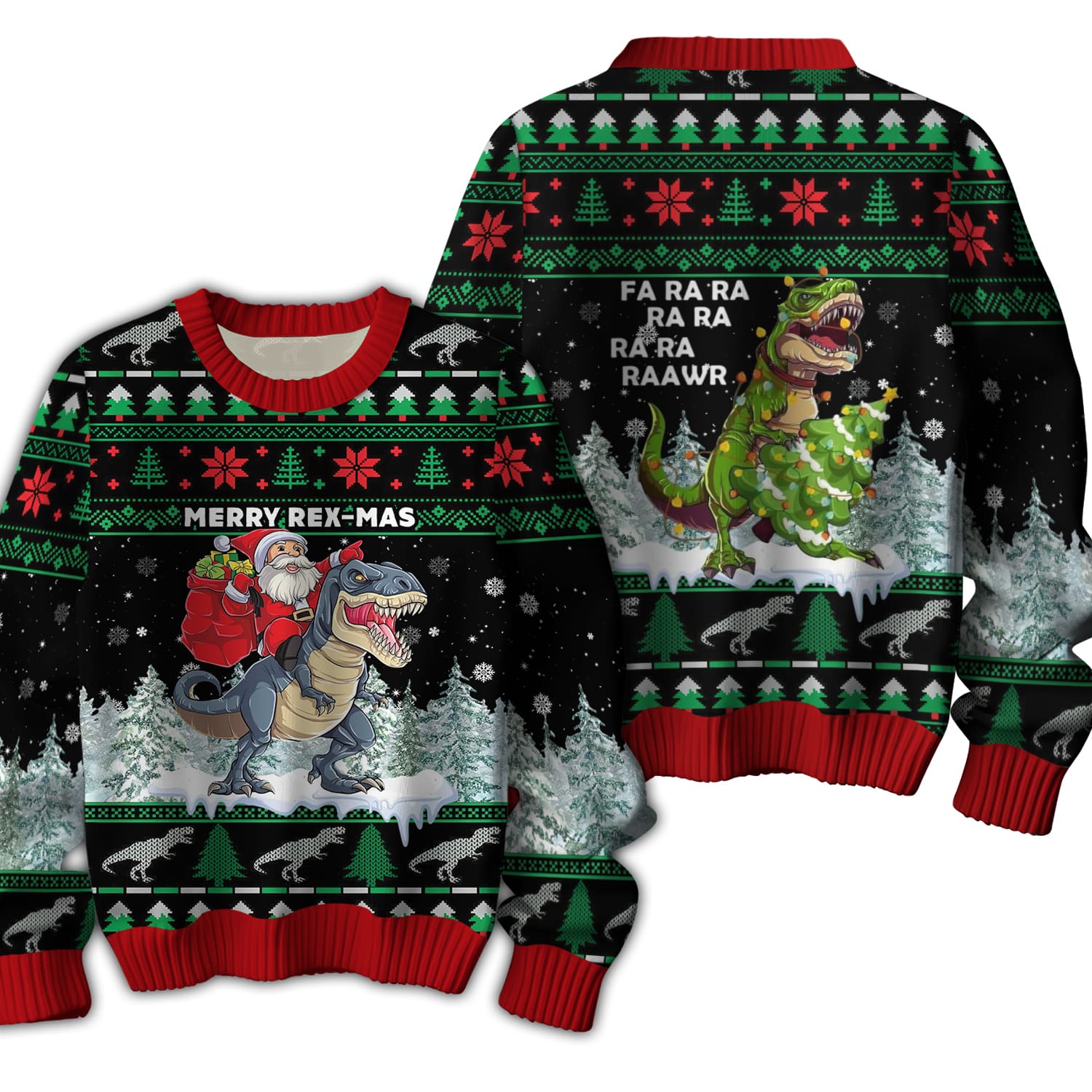 Unleash the holiday cheer with this roar-some sweater! Featuring Santa riding a T-Rex and a festive “Merry Rex-Mas,” it’s perfect for a prehistoric twist on Christmas. RAWR into the holidays!
