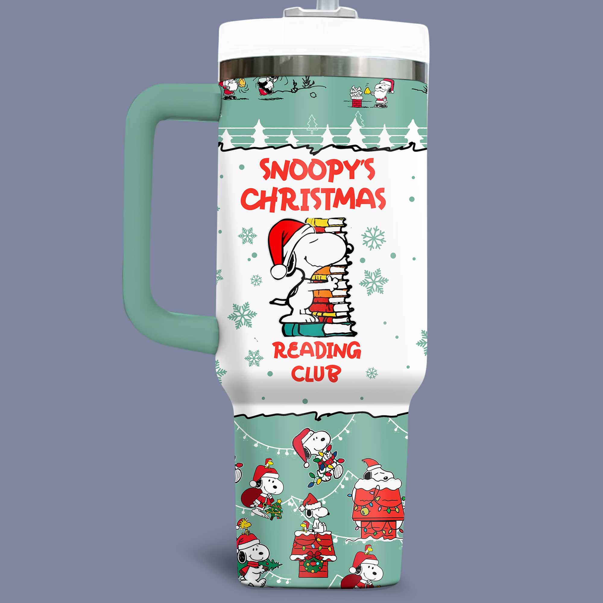 Get cozy with this Snoopy’s Christmas Reading Club tumbler, featuring festive designs and bookish charm—perfect for book lovers and Peanuts fans alike!