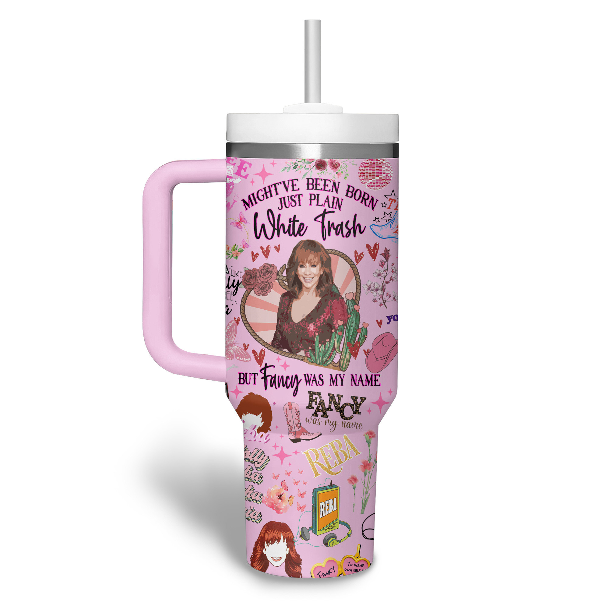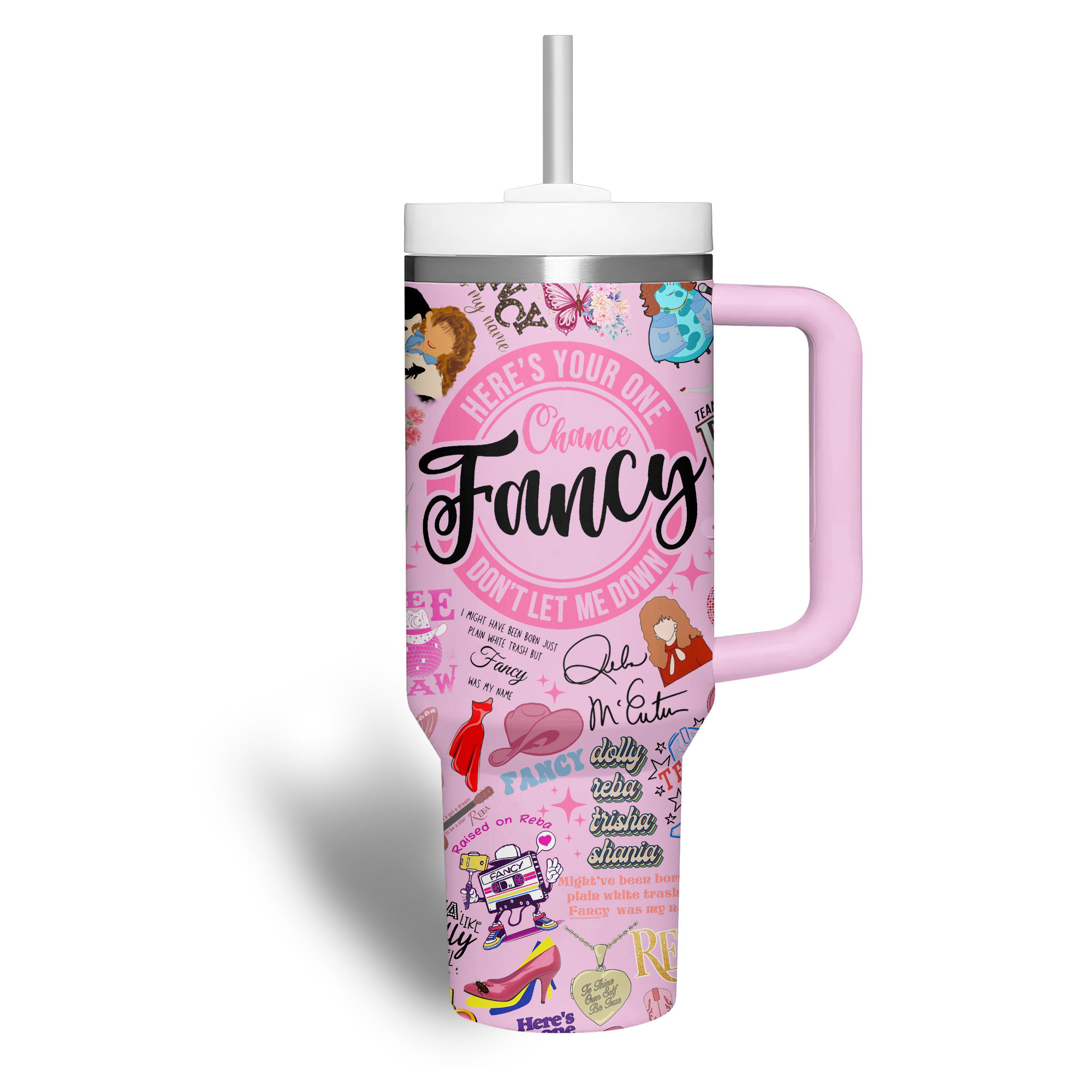 Here’s your one chance, Fancy! Celebrate Reba’s iconic style and unforgettable lyrics with this vibrant pink tumbler—perfect for fans of the queen!
