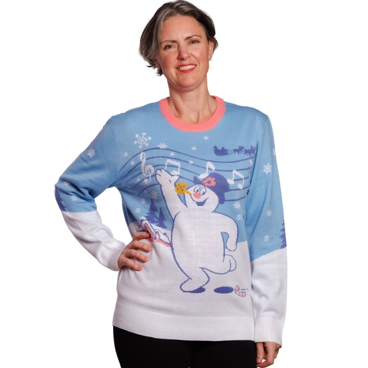 Step into a winter wonderland with this cheerful Frosty the Snowman sweater! Perfect for spreading holiday joy and singing along to festive tunes.