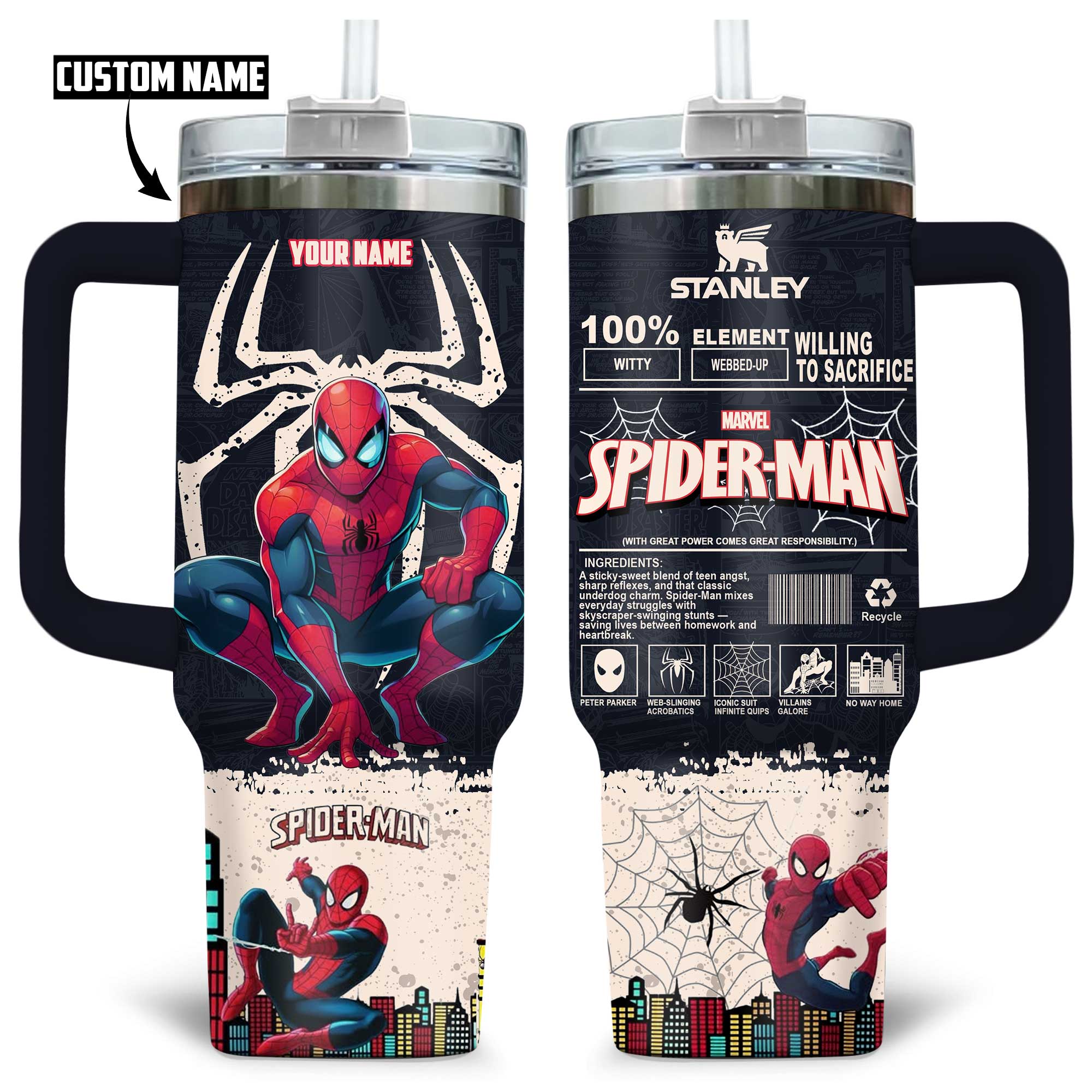 Swing into action with this customizable *Spider-Man* tumbler! Featuring the web-slinging hero, bold designs, and room for your name, it’s perfect for fans of Marvel’s witty and courageous wall-crawler.
