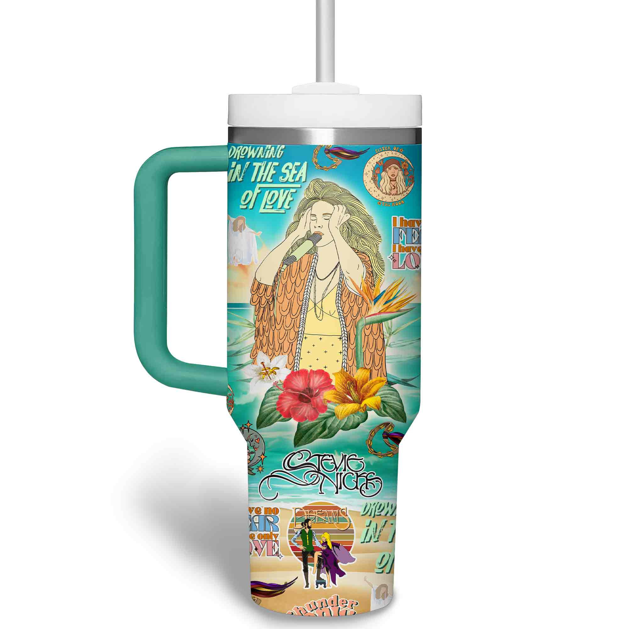 Dive into the vibrant world of Stevie Nicks with this tropical-inspired tumbler! Featuring bold colors and iconic lyrics, it’s a unique treasure for every fan.