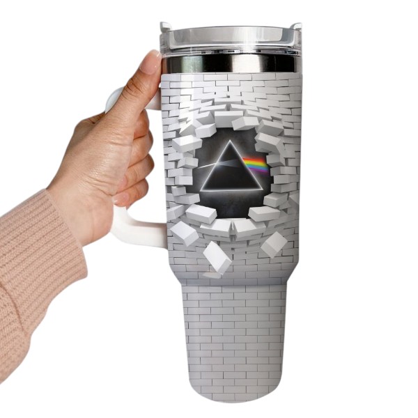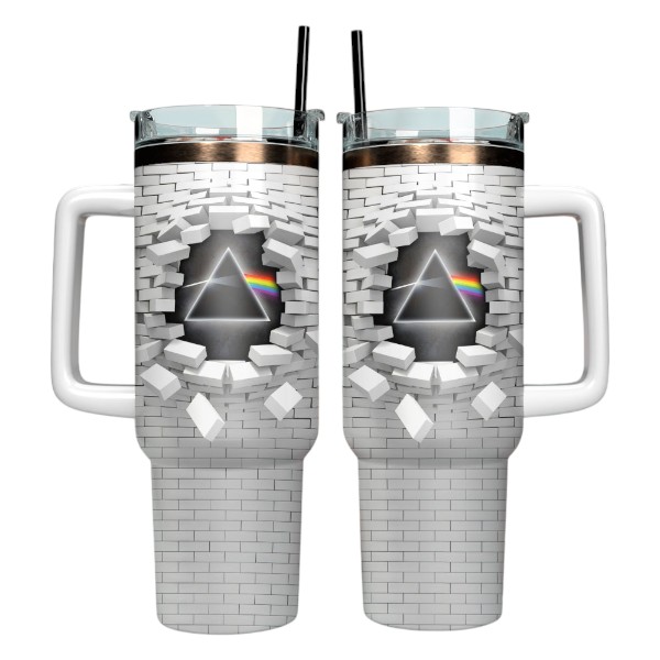 Break through barriers with this Pink Floyd tumbler, featuring the iconic prism from The Dark Side of the Moon bursting through “The Wall.” A sleek and timeless design for any devoted fan!