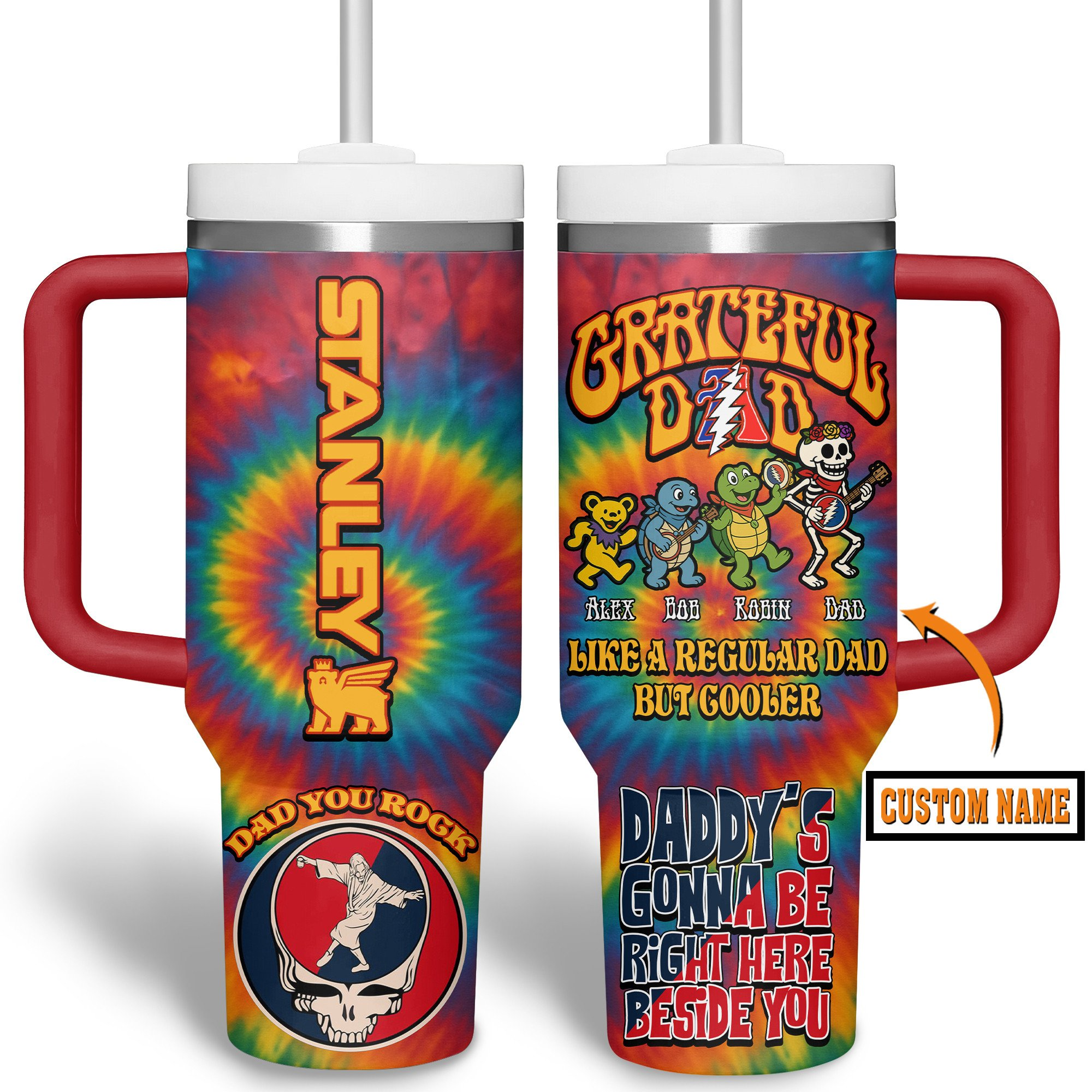 Celebrate the coolest dads with this tie-dye Grateful Dead Stanley tumbler—100% groovy, customizable, and perfect for rocking out with your favorite Deadhead dad!
