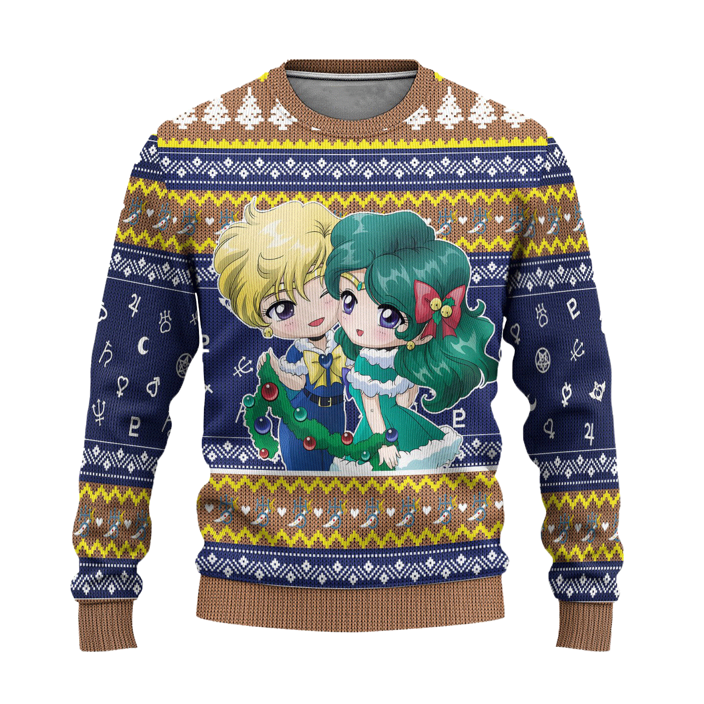 Sailor Uranus & Neptune Chibi Sweater – Outer Lovers’ Winter Magic!