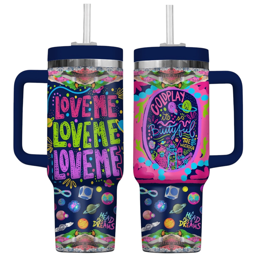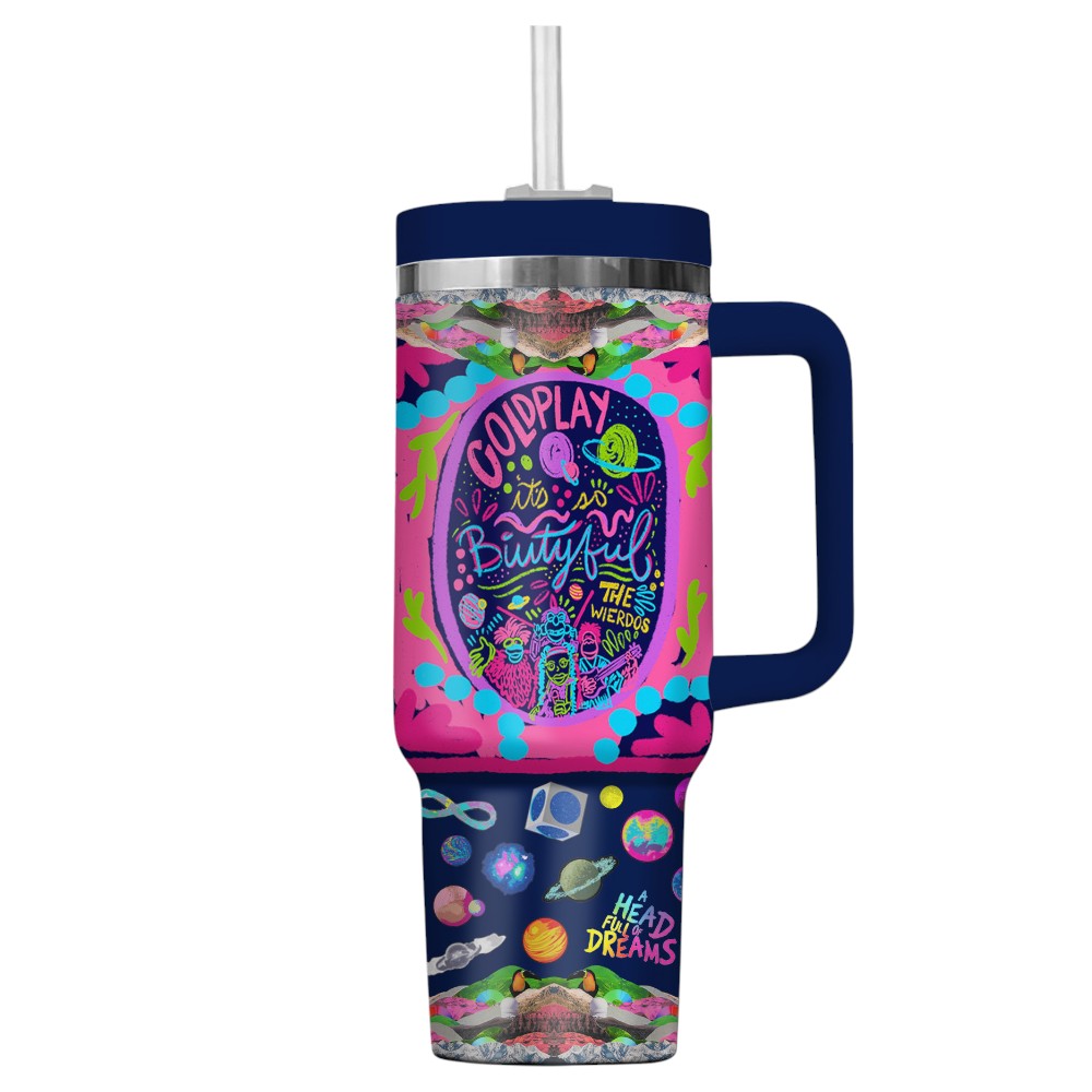 Spread vibrant vibes with this colorful Coldplay tumbler! Perfect for A Head Full of Dreams and hearts full of love.