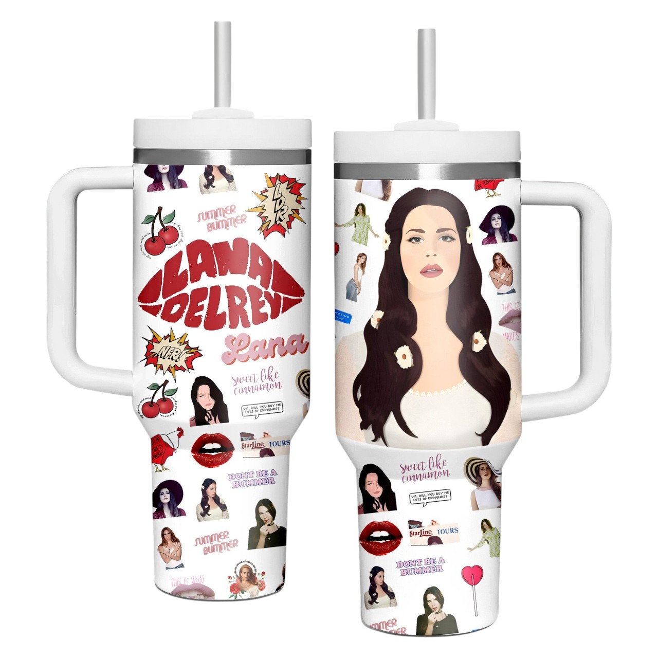 Embrace vintage vibes with this gorgeous Lana Del Rey Stanley cup, featuring iconic imagery and lyrics that capture her timeless aesthetic—perfect for every dreamy fan!