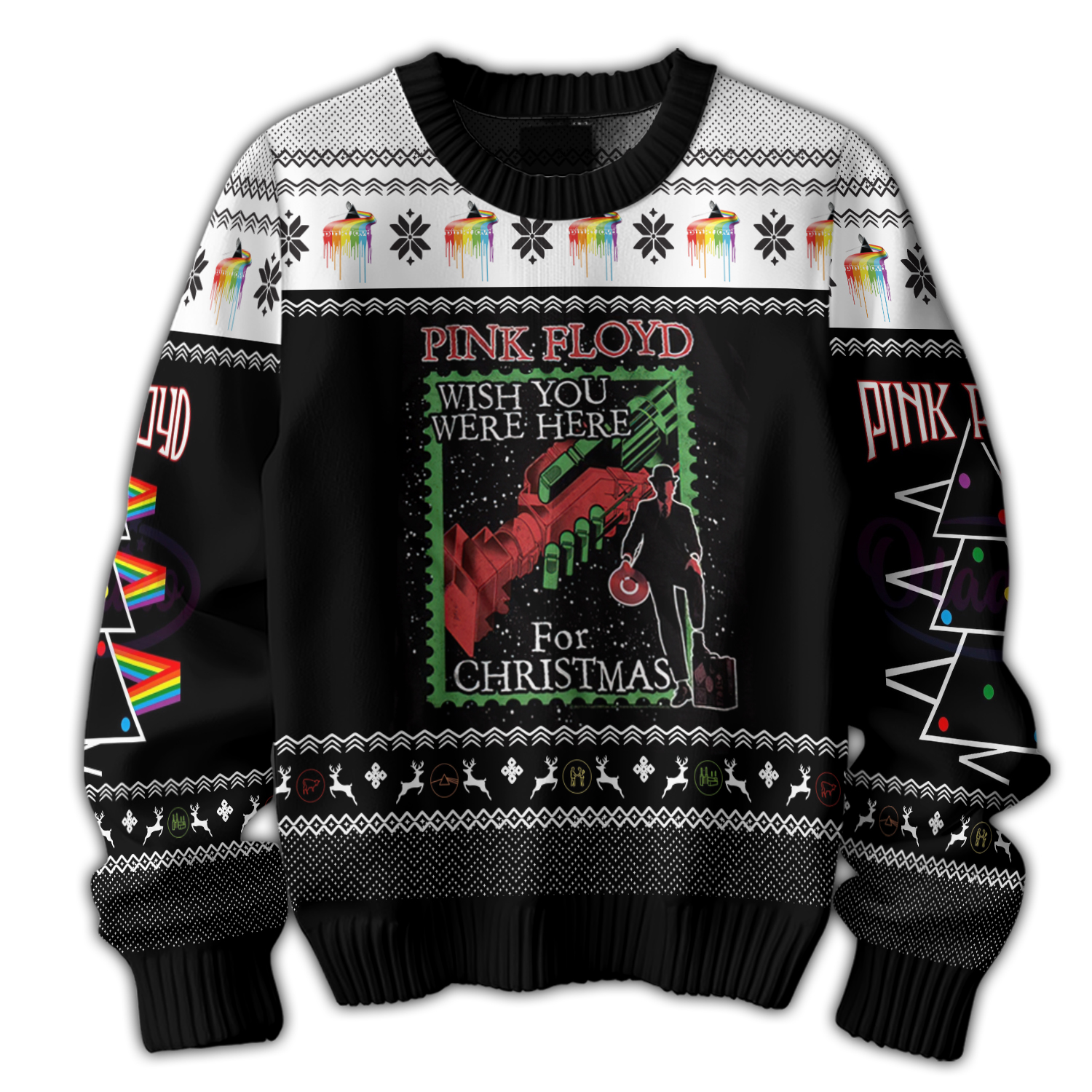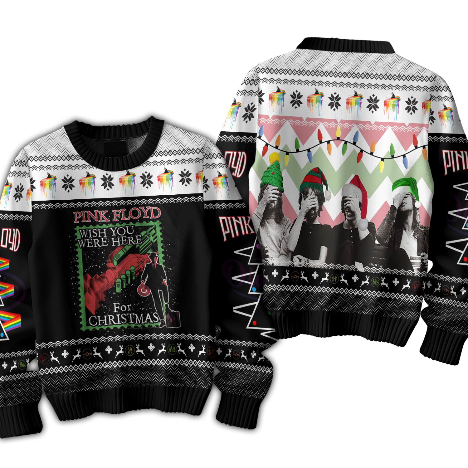 Elevate your holiday look with this Pink Floyd sweater, featuring “Wish You Were Here for Christmas” artwork and festive designs. Perfect for fans of classic rock!
