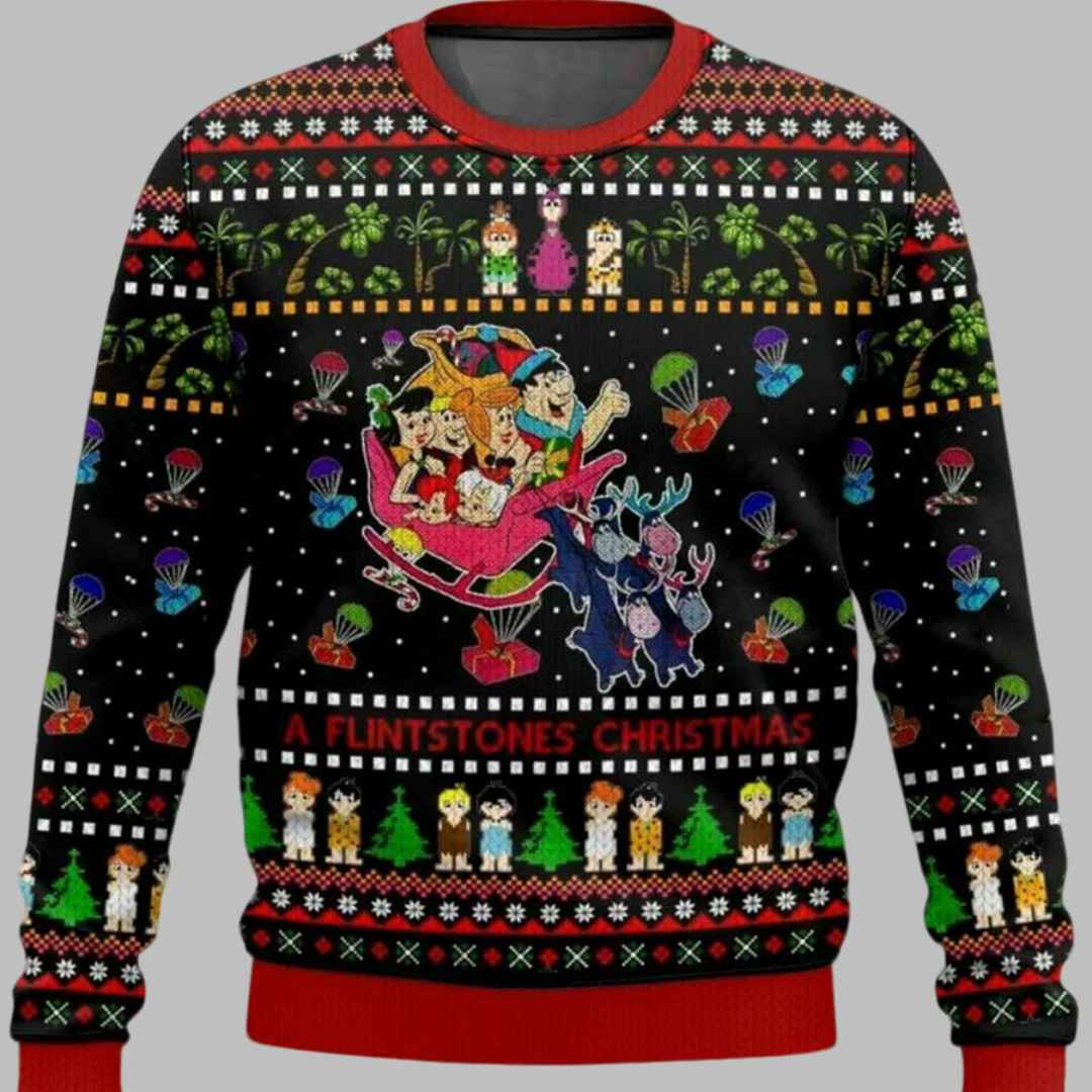 Celebrate a Yabba-Dabba-Doo holiday with this colorful Flintstones Christmas sweater—prehistoric festive fun!